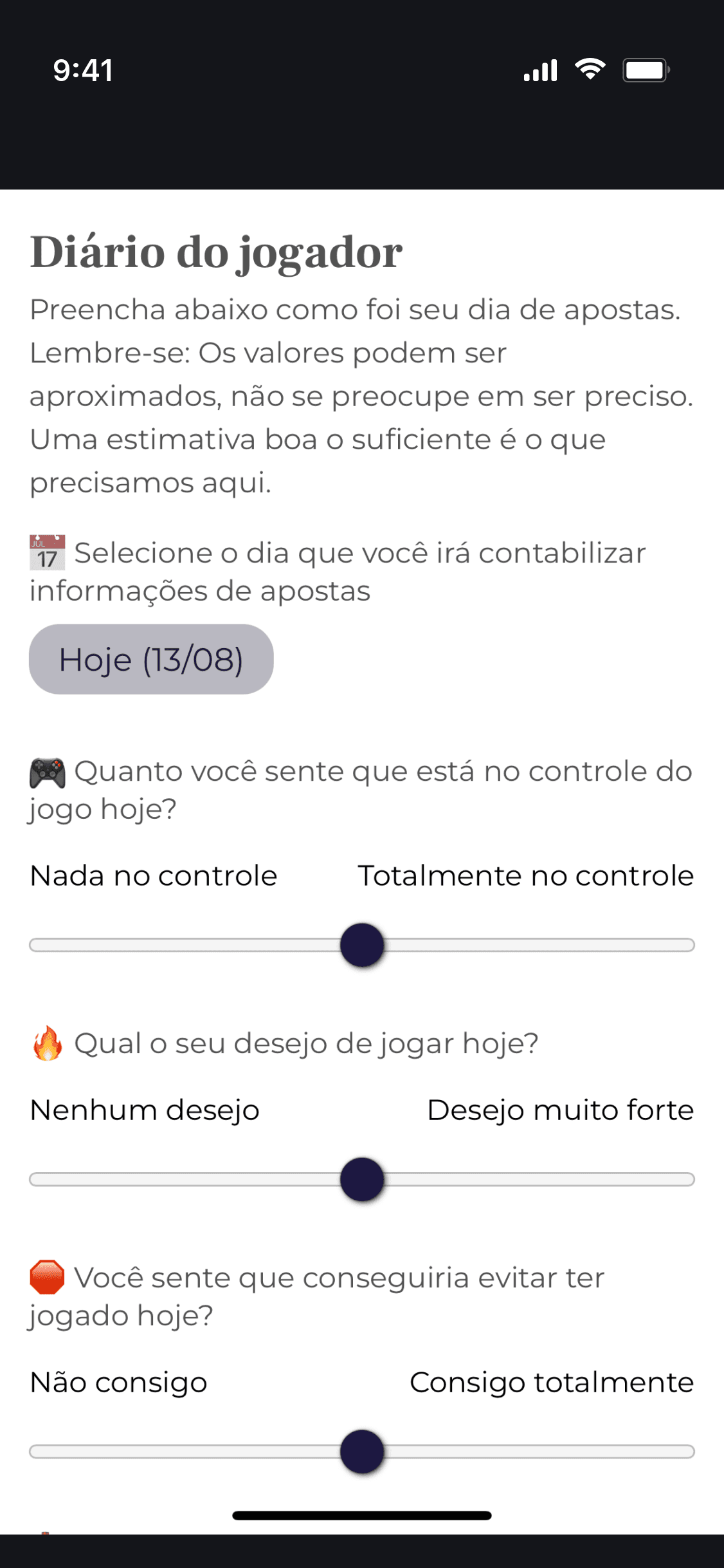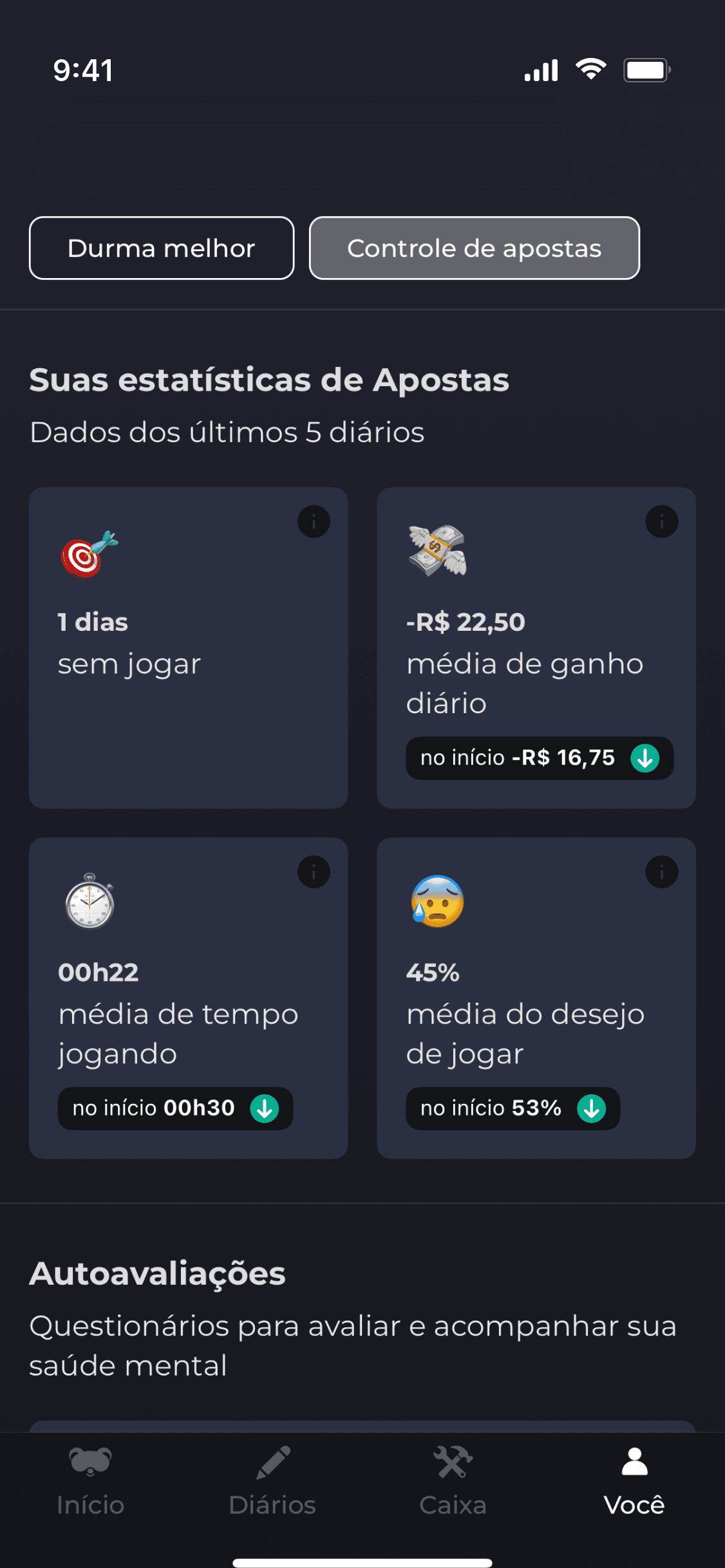 Registros de sono, humor, hábitos e nutrição